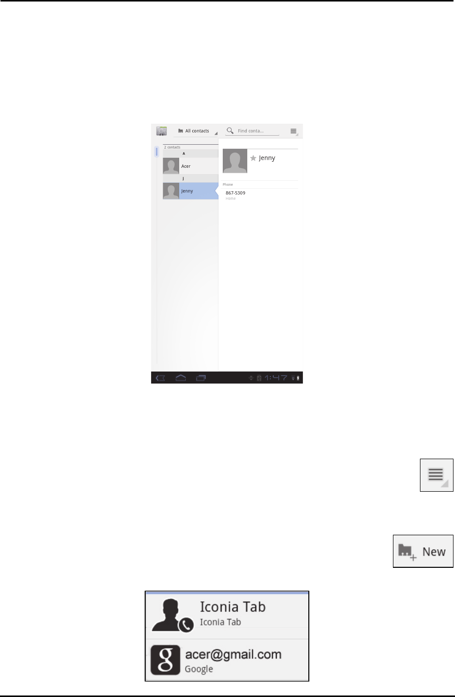 Tap New to add a new contact. You will be asked which account